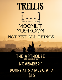 The Arthouse is pleased to present an evening of musical performances ranging from synth-based psychedeilic rock, post-hardcore, to post-rock. Enjoy hearing from Not Yet All Things, Trellis, Moonlit Mushroom, ...and i found a way. Alcoholic and N/A drinks will also be available for purchase. See you there!